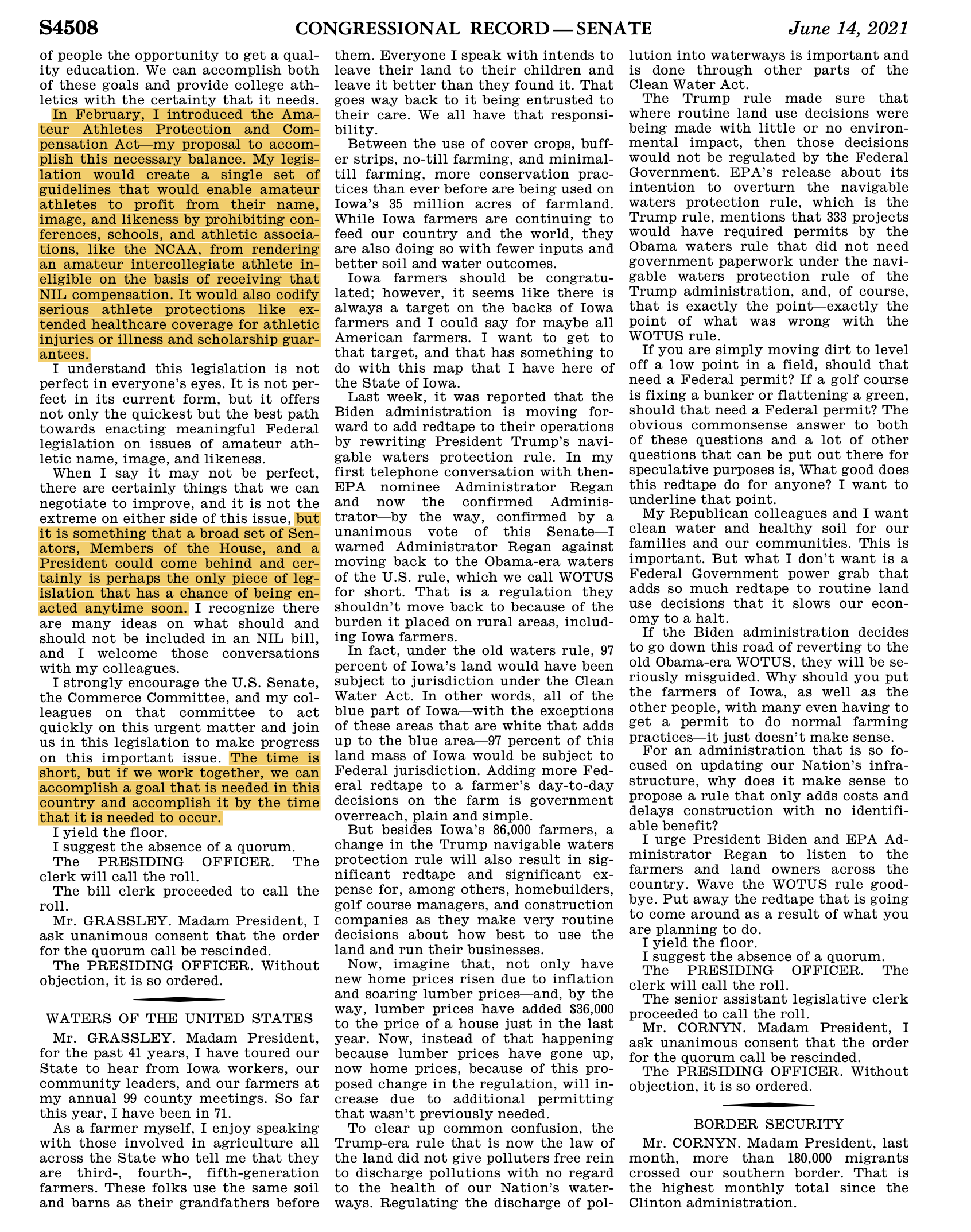 Purpose: Unintended consequences of NIL market; speed up timeline for Congressional intervention; “national standard” (preemption); endless litigation (antitrust immunity); “student-athlete” is opposite of employee (no employee status); Cantwell shows clear deference to NCAA/Power 5 conceptualization of amateurism